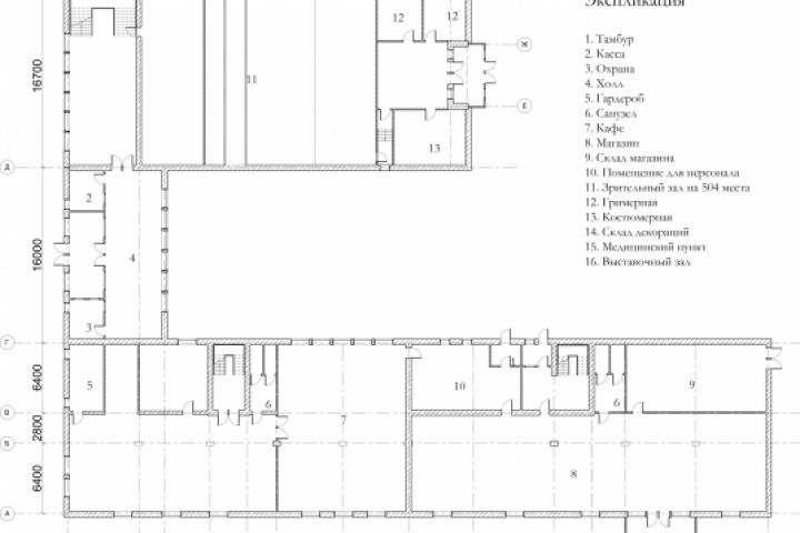 План 1 этажа многофункционального комплекса для поселка на 8300 жителей.