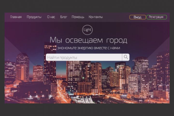 В работе реализован макет шапки сайта интернет-магазина. Фоновое изображение отображает основную специализацию - освещение. Присутствует возможность входа и регистрации. Базовый функционал - поисковая строка для товаров
