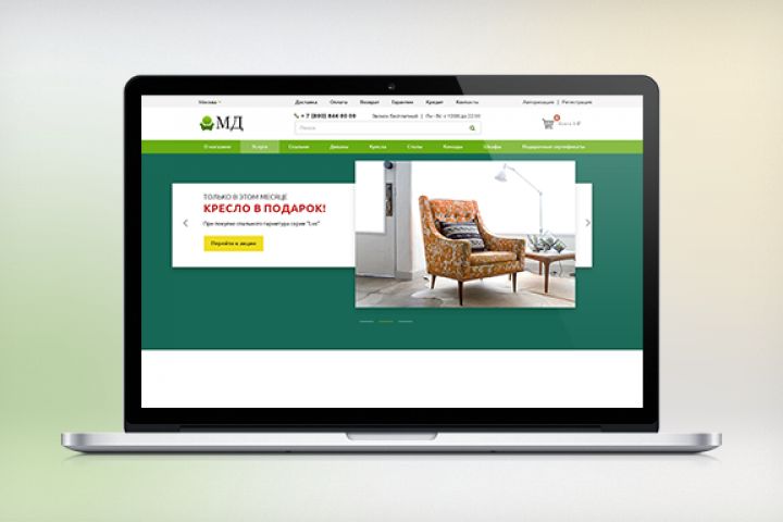 Разработан главный экран для сайта интернет магазина "МД" по продаже мебели и изготовлению на заказ,