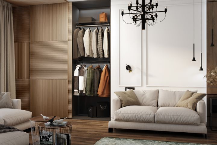 Моделирование и визуализация гардеробной системы в интерьере.