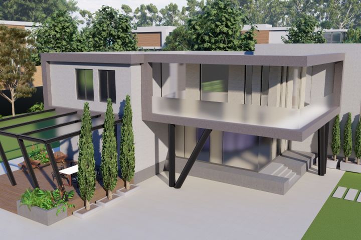 Дизайн реконструкции частного дома. Добавлена летняя терраса, пристройка ко второму этажу и полностью изменена отделка фасада