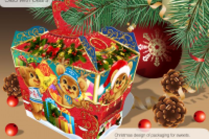 Graphic design for cardboard Xmas box for sweets (sled shape). Дизайн новогодней упаковки в форме саней.