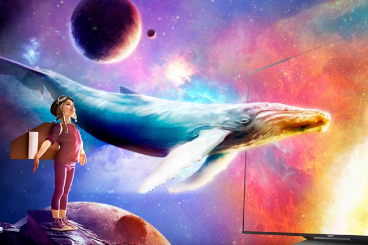 Ключевая рекламная визуализации телевизоров Sony Bravia с технологией 4K Ultra HD. Эффектное изображение перевернет представление о просмотре.
