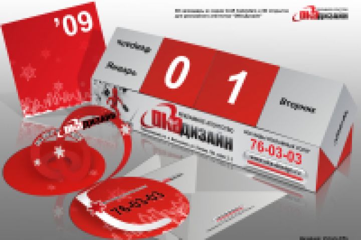 Разработка эксклюзивного трехмерного календаря и новогодней пиар-открытки для рекламного агентства "ОКА-Дизайн".