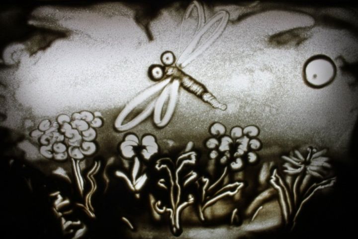 Монтаж видеоролика, поздравительная открытка, нарисованная на песке.