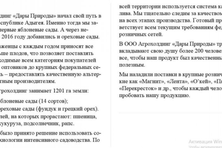 Наполнение сайта ООО Агрохолдинг Дары Природы.
