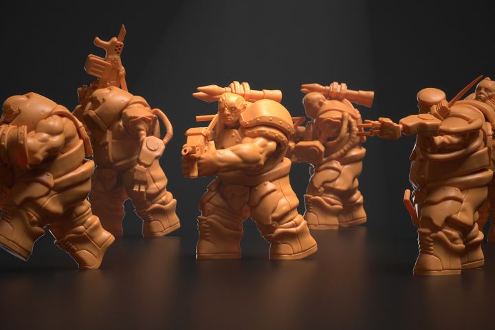 Шесть 43-мм миниатюрок подготовленных к 3D печати.