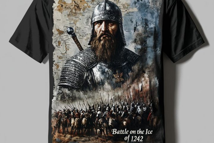 ТЗ: разработка дизайна принта для серии маек. Тема "Александр Невский на фоне событий Ледового побоища 1242 года"