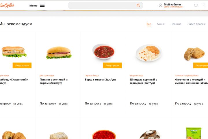 Разработка каталога для оптовых покупателей в сфере продуктов общественного питания b2b.sdobin.ru
