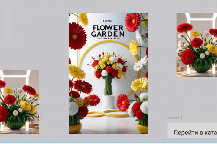 Сгенерировать 4 слайда для магазина цветов. На слайдах должны присутствовать букеты, композиции из цветов, в ярких тоннах. Должна быть кнопка для перехода.