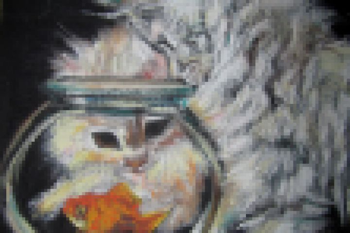 Рисунок "Любопытные котята и золотая рыбка", пастель