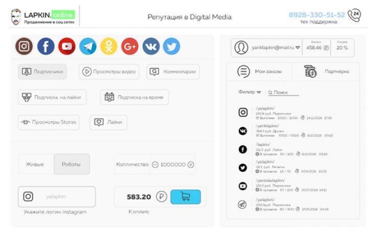 Сервис по созданию репутации в Digital пространстве, покупка лайков, просмотров, подписчиков.