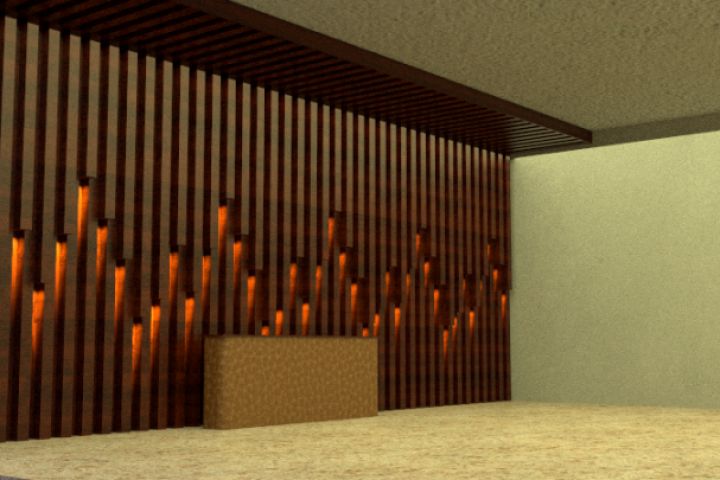 Визуализация стены с декоративными рейками и освещением