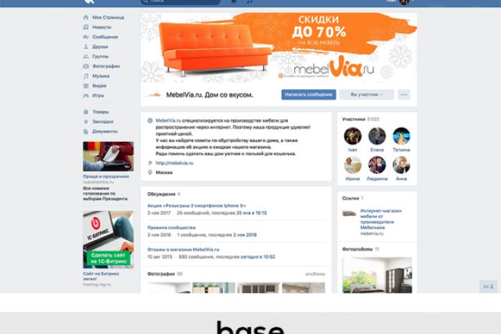 Продвижение и ведение группы ВКонтакте Онлайн гипермаркет мебели MebelVia.ru
