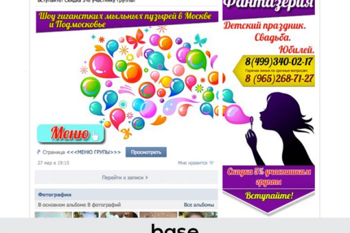 Оформление группы Шоу мыльных пузырей ВКонтакте