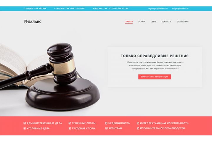 Создание корпоративного сайта "под ключ" для юридической компании. Основные идеи к разработке сайта: современный легкий дизайн, отсутствие огромного количества текстовой информации, загромождающей обычно 80 % видимой области страницы (поэтому текст либо находится в раскрывающихся списках, либо предусмотрен его скроллинг в полях).
