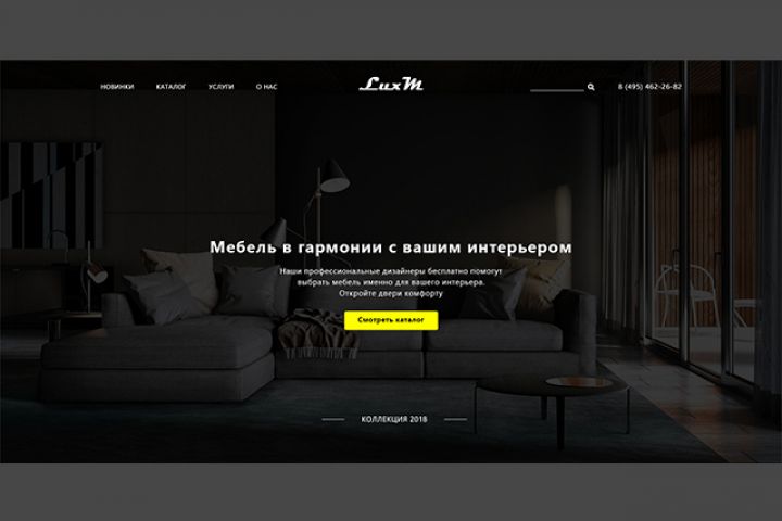 Разработка интернет-магазина по продаже мебели. Концепция дизайна, по требованию клиента, выполнена в темном цвете, в стиле минимализма.