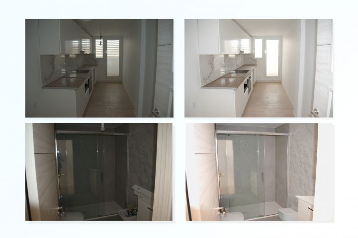 Обработка фото помещения. Цветокоррекция. Удаление не нужных деталей.(пленки на кухне, лампочки, повреждений,мусора)