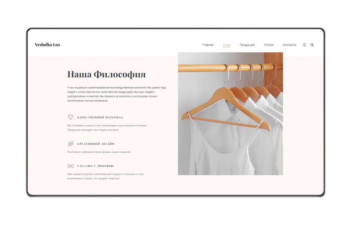 Разработка и верстка сайта для производственной компании Мир вешалок ( https://mirveshalok.ru, https://veshalka-lux.ru)