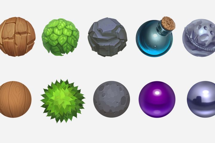 Отрисовка в фотошопе текстуры материалов с нуля: дерево, листики, камень, стекло, металл.