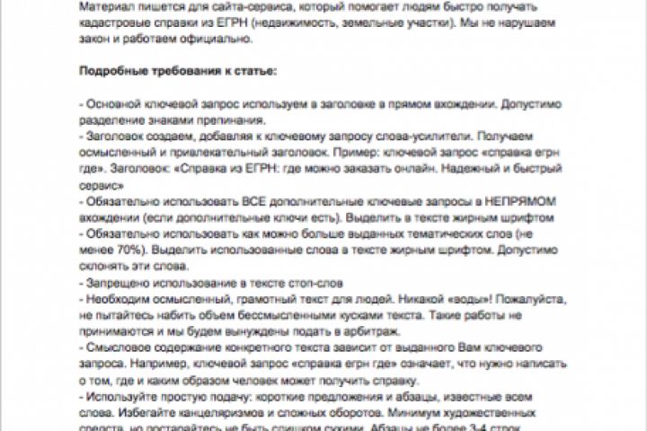 ТЗ использовалось для написания 8 различных статей в одной тематике.