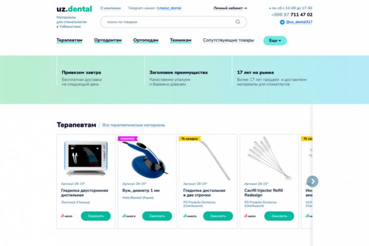 Продумать удобный интернет-магазин стоматологических инструментов для двух типов пользователей: не авторизованных и авторизованных.