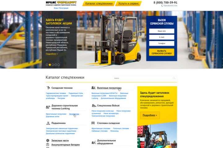 Разработка дизайна сайта для компании ИРБИС ФОРКЛИФТ