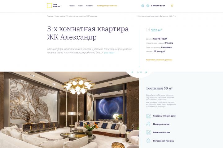 UX/UI дизайн. Для компании, занимающейся эксклюзивным ремонтом, премиум-класса. Было выполнено: - проектирование архитектуры и интерфейса - разработка продающей структуры страницы - дизайн - адаптация под мобильные