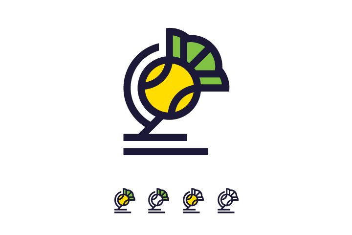 В знаке соединено несколько образов: глобус, теннисный мяч, воланчик. Логотип ассоциируется со спортом, международными спортивными играми. Подходит для компании связанной с международными спортивными играми, соревнованиями, а частности, соревнования по теннису, бадминтону. Возможно использование логотипа в трех, двух и в одном цвете. Динамичный, геометричный логотип. В логотипе используется свободный шрифт Raleway