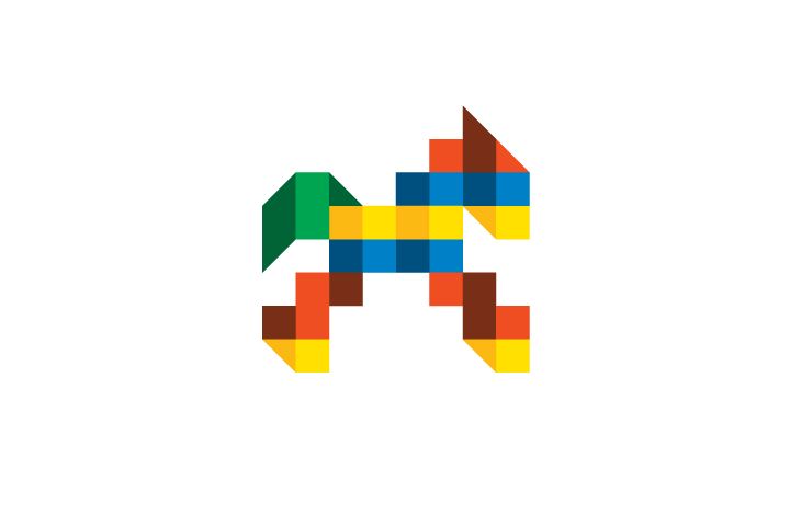 В знаке соединены следующие образы: лошадь, пиксель, пазл, квадрат, конструктор. Логотип подойдет для компании связанной с детскими праздниками, развлечениями, конструкторами, развивающими занятиями для детей, возможно исользование в других сферах деятельности. Знак лаконичен и минималистичен, может использоваться в девяти цветах цветах. Знак построен по пропорциям.