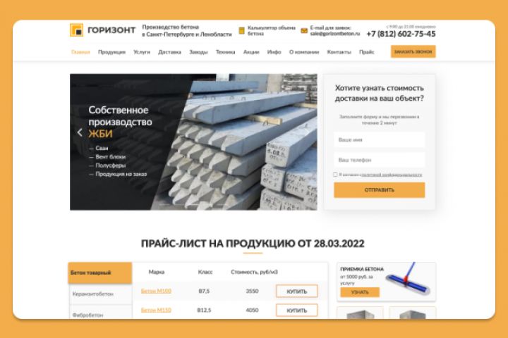 ГОРИЗОНТ-Производство бетона в Санкт-Петербурге и Ленобласти