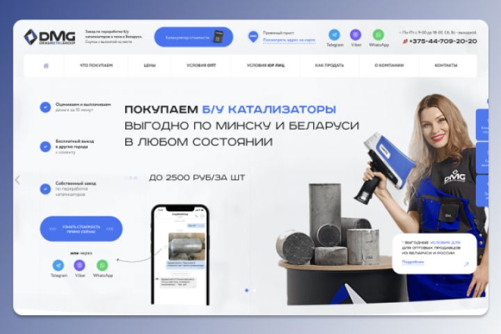 Завод по переработке б/у катализаторов и лома в Беларуси. Верстка и посадка на WordPress лендинга.