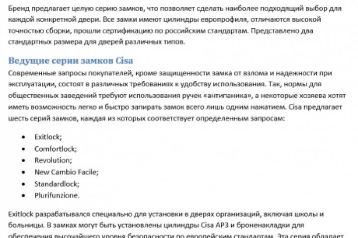 Замки Cisa для металлических дверей