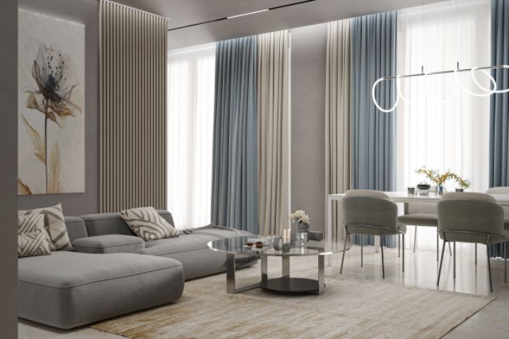 Визуализация гостиной в современном стиле по чертежам заказчика