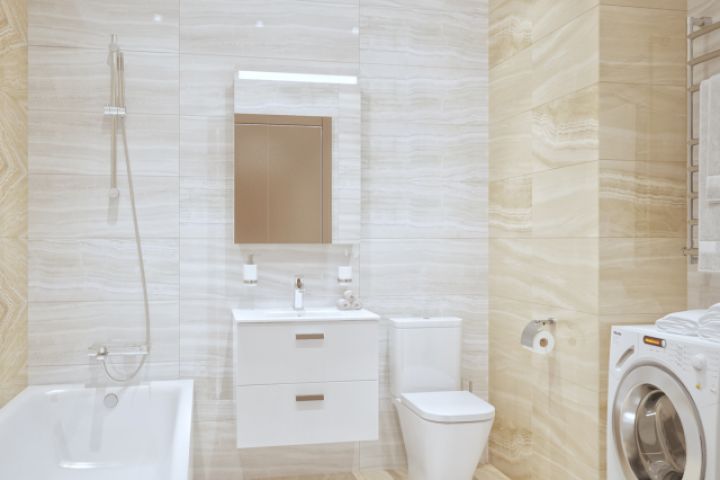 Крупноформатная плитка с невероятным принтом фактуры под мрамор. Все просто. Два цвета, большие форматы плитки, четкие линии сантехники ROCA GAP. Теплый стиль ванной комнаты можно дополнить интерьерными деталями, которые всегда создают искренний домашний уют.