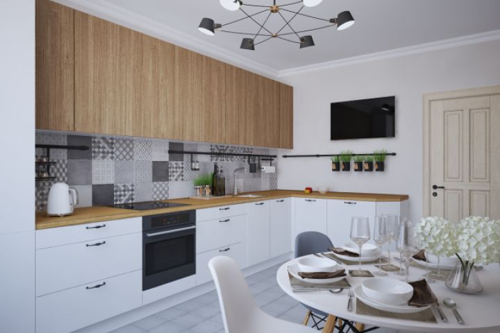 Жители холодной Скандинавии отдают предпочтение теплым и уютным интерьерам. Он прост и одновременно необыкновенно легок. Он излучает невероятную искренность. Простые белые фасады и фасады под дерево поддержаны плиткой на фартуке в стиле сканди. Все лаконично, светло и уютно)