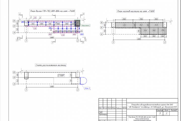 Разработан раздел (КМ, КМД) металлической площадки для доступа и обслуживания кран-балки на производстве.