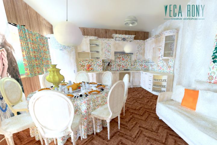 Визуализация интерьера кухни с элементами русского стиля. Выполнен в ArchiCAD и визуализирован в Artlantis.