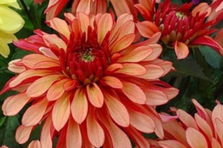 Георгины Арт Деко относится к бордюрному сорту, высота которой 50-60 см, но при этом имеет внушительного размера цветы, достигающие 10 см в диаметре. Элегантное сочетание насыщенных оттенков (лососевый, светло-оранжевый, розовый) создает оптическую иллюзию свечения, исходящего из центра цветка.