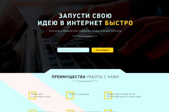 Был разработан лэндинг для компании, занимающейся выводом оффлайн бизнеса в онлайн. Делалось все строго по макету. На работу ушел 1 день.