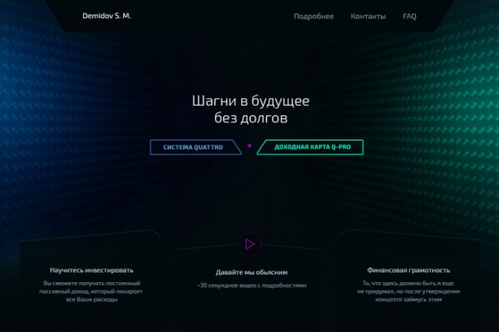 Demidov S.M. ставит перед собой цель избавить своих клиентов от долгов и создать для них все условия для заработка посредством инвестирования.