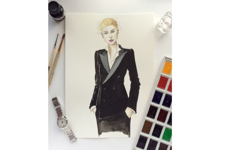 Фэшн-иллюстрация, акварель и тушь