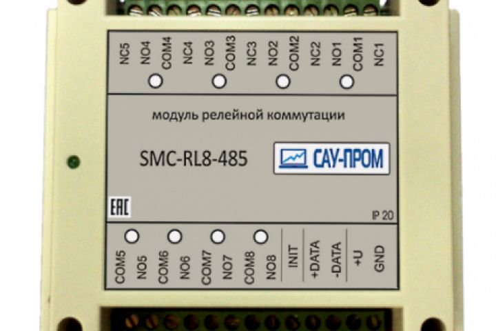 Модуль релейной коммутации SMC-SR8-485 предназначен для коммутации сигнальных цепей постоянного и переменного тока. Управление модулем осуществляется через интерфейс RS-485 по протоколу Modbus RTU.