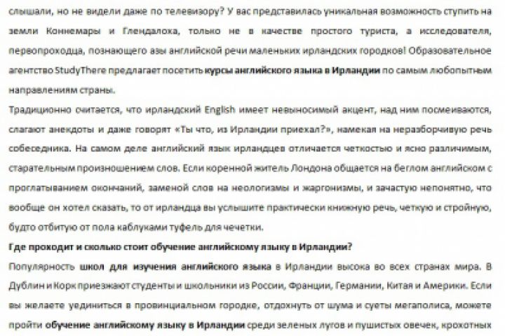 Текст на страницу с предложениями туров для обучения английскому языку в Ирландии. Постоянный клиент - Международное образование StudyThere (СТ Консалтинг) - http://www.studythere.ru/