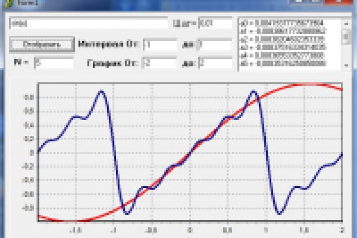 Вычисление коэффициентов. Реализация метода Симсона для вычисления интеграла. Исправление отображения графика функции.