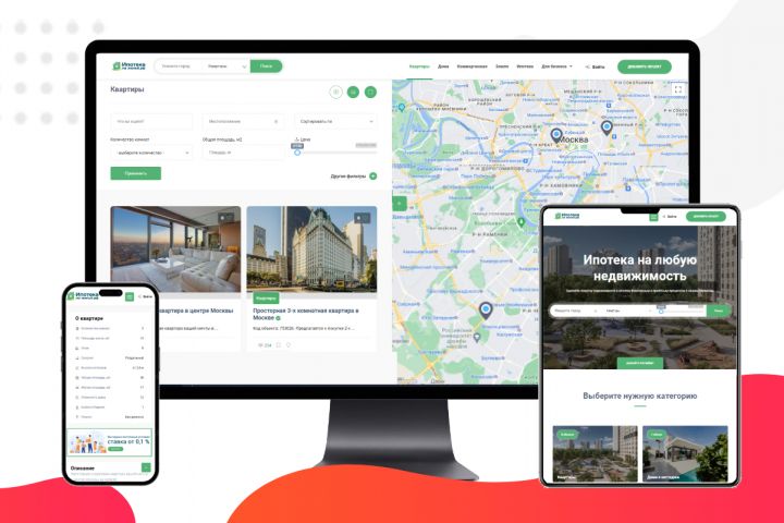 Разработали сайт для компании «Ипотека на жильё.рф». Это площадка, которая помогает людям найти идеальное жильё и оформить ипотеку.