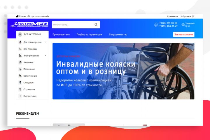 Проект был успешно реализован и запущен в работу. Сайт магазина АктивМед стал более современным и удобным, что позволило привлечь больше клиентов и увеличить продажи инвалидных колясок.