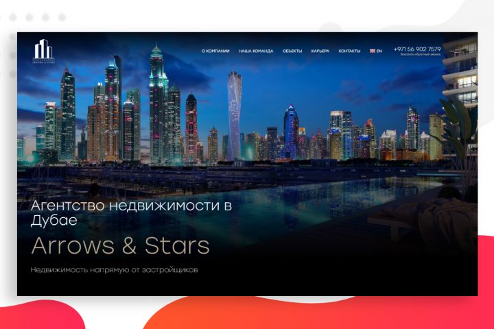 Создание эффективного и привлекательного лендинг сайта для агентства недвижимости Arrows&Stars в Дубае. Сайт должен был стать визитной карточкой компании и инструментом для привлечения клиентов.