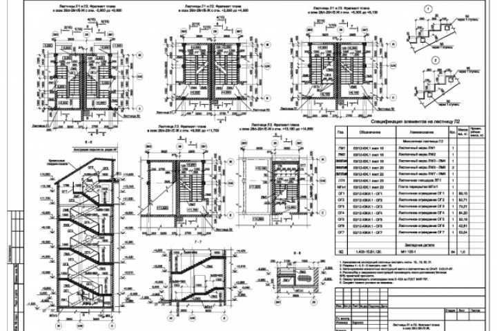 Чертеж монолитной лестницы АБК складского помещения. Имеется фотография данного складского помещения.