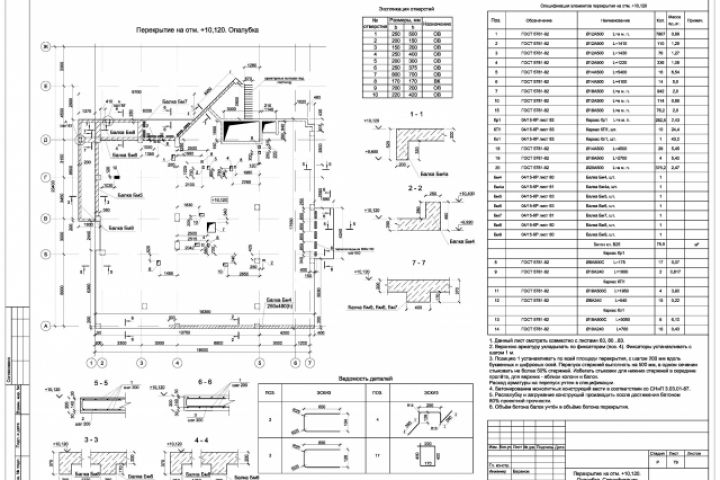Чертеж плиты перекрытия монолитного здания.